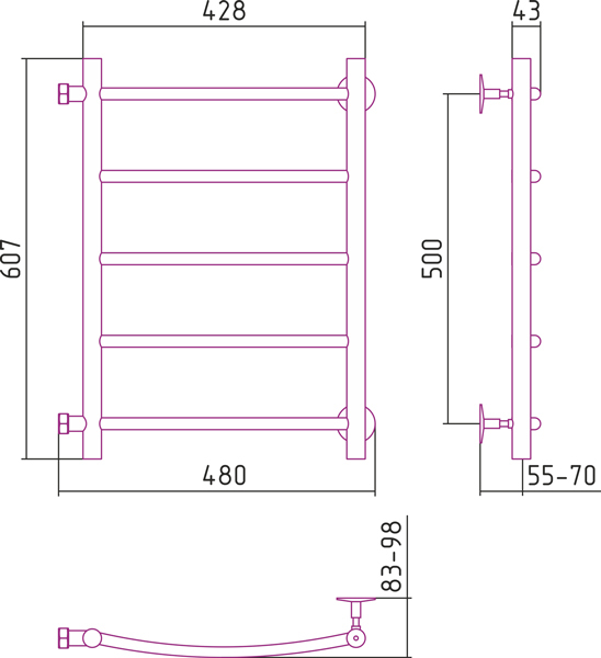 Полотенцесушитель водяной Стилье ВЕРСИЯ-Б2  00612-5040 500х400