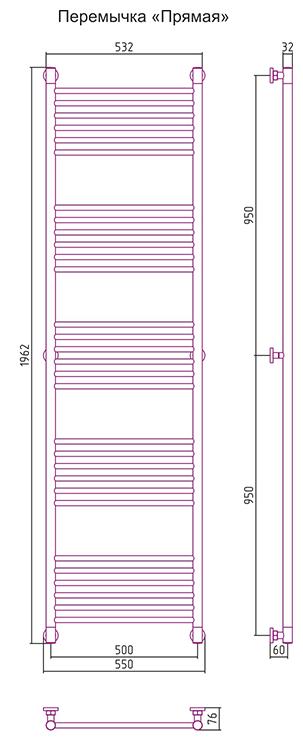 —Полотенцесушитель водяной Сунержа БОГЕМА+ прямая 1900х500