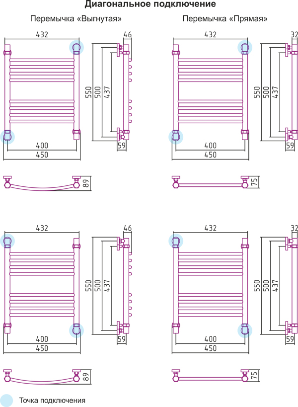 Диагональное подключение, см