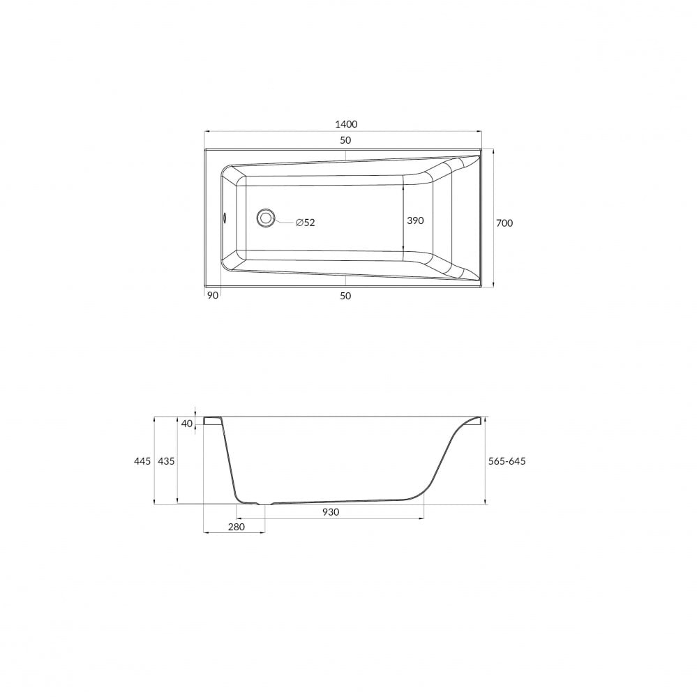 Ванна акриловая Cersanit LORENA 63345 140x70 см.