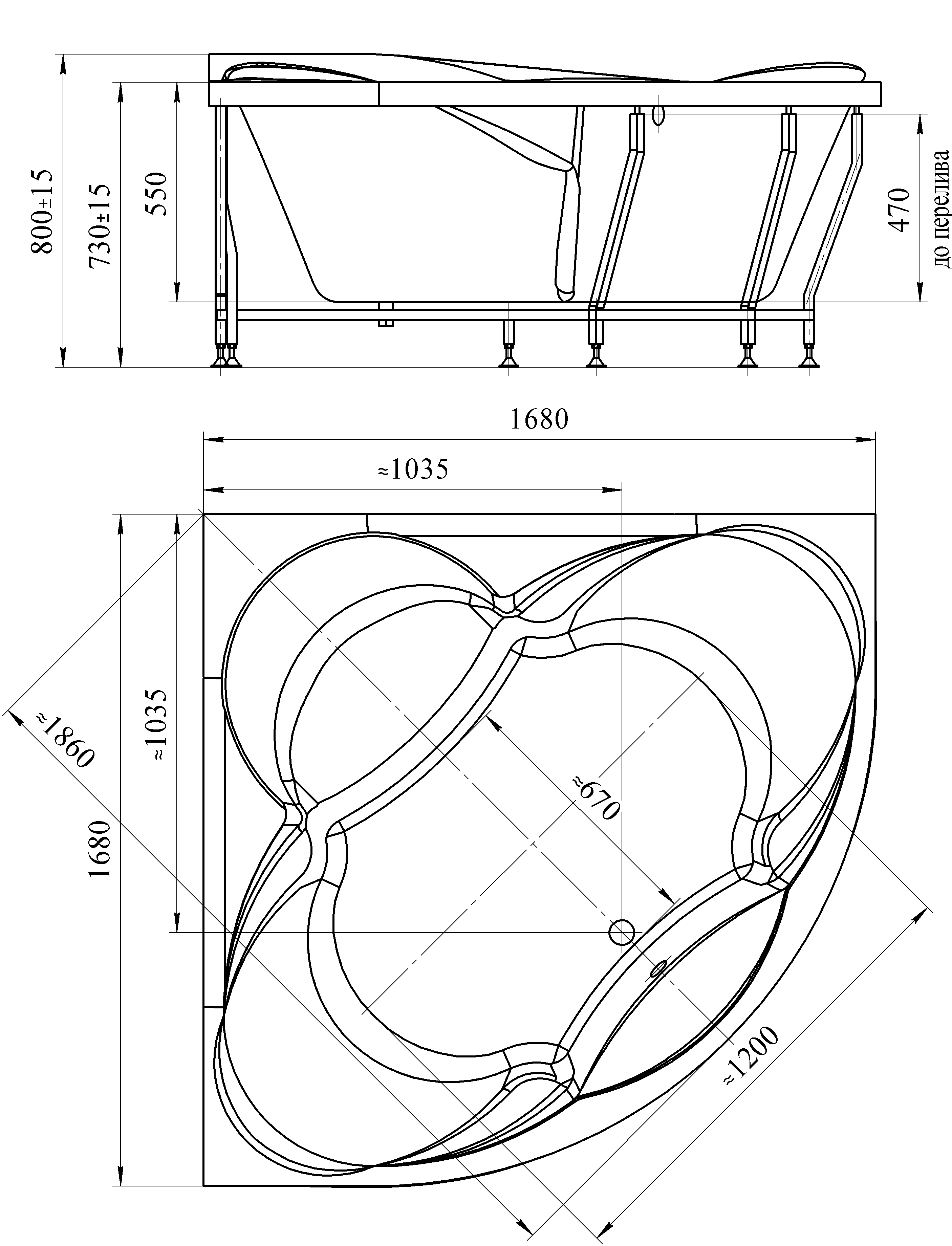 —Ванна акриловая угл. Radomir ФИЛАДЕЛЬФИЯ 168*168 см. с каркасом